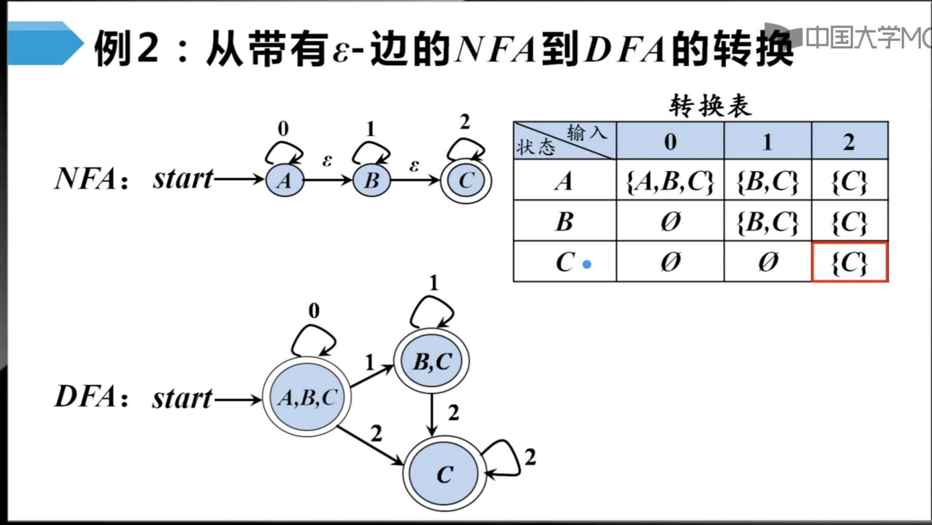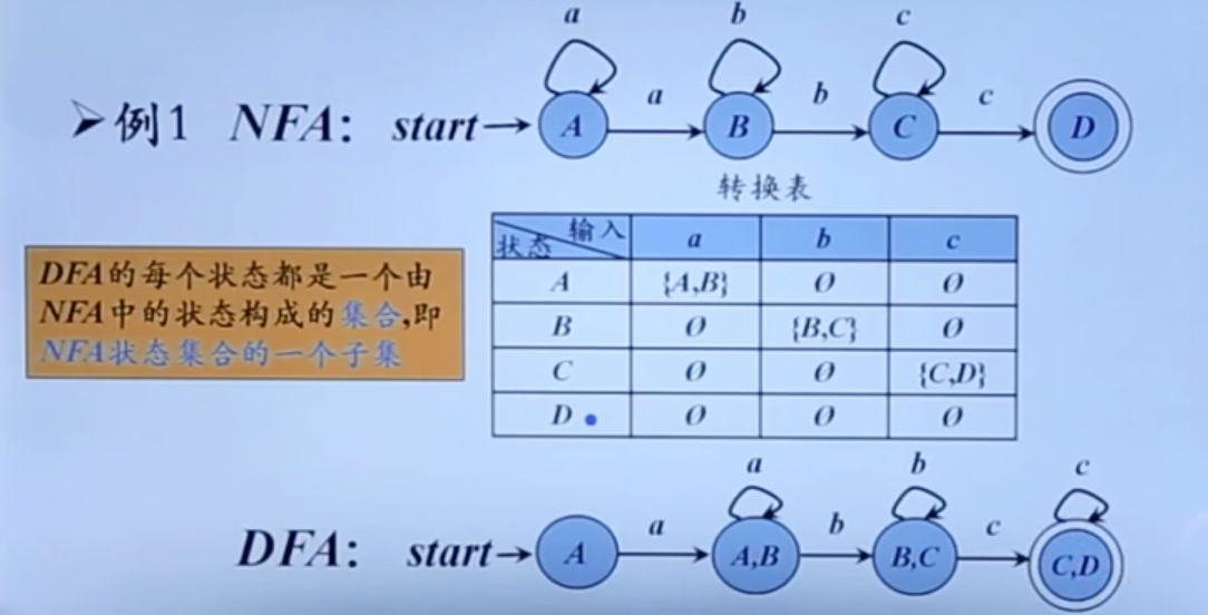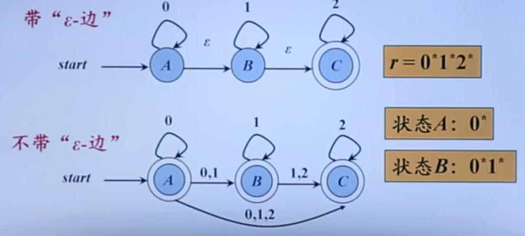 和DFA的区别在于,$\delta(s,a)$表示从s出发,沿a能到达的所有状态的集合。