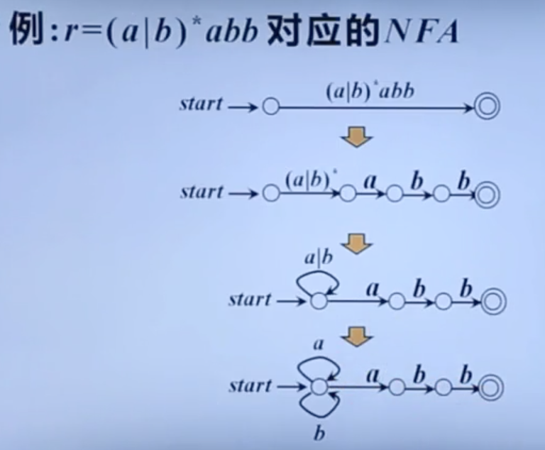 他们都是$r=(a|b)^*abb$,由此$RE \Leftrightarrow FA \Leftrightarrow 正则文法$。