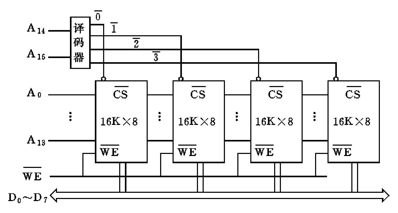 比如利用16K×8位的DRAM芯片,设计64K×8位的DRAM存储器。